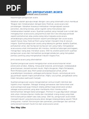 Kepentingan Pengurusan Acara Pdf