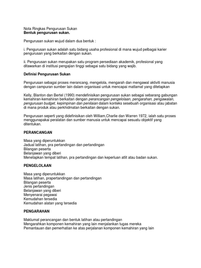 Nota Ringkas Pengurusan Sukan Pdf